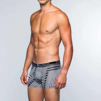 The printed fitted short is in a soft cotton blended knit fabric with enforced flat seams & features double fabric at the base (preventing chafing), for high wearing everyday comfort. Trademarked with a fashionable logo elastic for a modern yet casual look. Made in Spain.