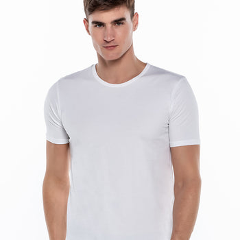 The short sleeve round neck top is in a soft cotton blend knit fabric which hugs the body, for high wearing everyday comfort. It's ideal as sleepwear or alternatively can be worn as an outerwear item, due to its timeless appearance. Made in Spain