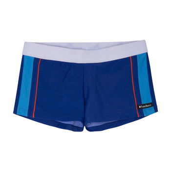These swimmers are in a stretch knit fabric with a geometric print design. It has been backed with a front lining to provide added comfort & support, whilst having an internal drawstring at the waistline. It's been detailed on the side legs with a navy piping for a modern sportif...