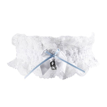 This exquisite garter is in a delicate scalloped Leavers lace with elastic & silicone tape, enabling it to stay securely on the leg. It has been adorned with tiny satin bows (one is in blue for luck if worn by a bride) & a silver mask charm for additional dramatic effect. FABRIC:...
