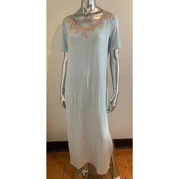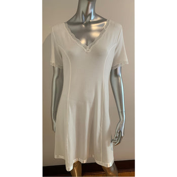 The short sleeve v-neck nightie is in a luxurious knit fabric which is incredibly lightweight & bears ultra softness that is distinctive to this brand. Detailed with a beautiful braid on the neckline & sleeve, whilst also being embellished on the body with a lustrous stitch detailing & ribbon on the hemline, adding...