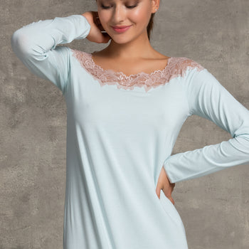 The long sleeve round neck top is in a soft cotton blend knit fabric which hugs the body, for high wearing everyday comfort. It's ideal as sleepwear or alternatively can be worn as an outerwear item, due to its timeless appearance. Made in Spain