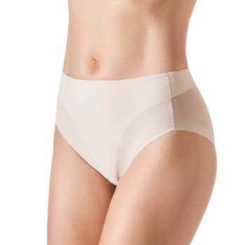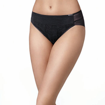 The timeless bikini is in a lightweight opaque knit fabric with invisible laser cut edges to provide a smooth profile for underneath garments.