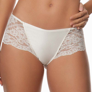 The cheeky short is mixed with exquisite Leavers lace & a contrasting light grey satin mesh lining for the front area. This collection adorns crosspiece detailing & satin bows for extra romanticism. LACE: 76% Polyamide, 24% Elastane LACE FRONT & BACK: 80% Polyamide, 20% Elastane LINING FRONT & BACK: 70%...