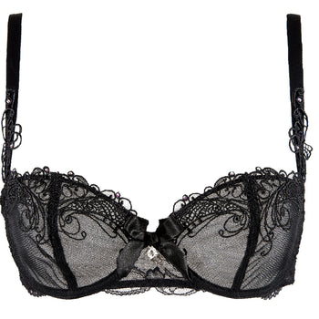 This half cup bra has slightly more coverage but still provides a natural uplift to enhance the women's décolletage, whilst combining an opulent embroidered tulle with a soft delicate stretch lace. This collection draws inspiration from the unique history of crystal engraving with it's rich motifs, touches of Swarovski crystals...