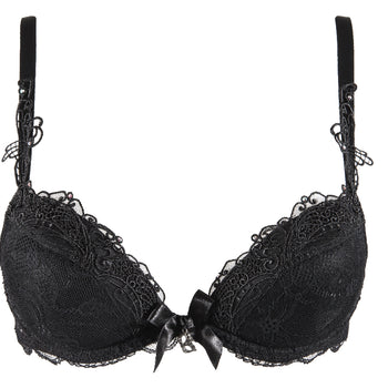 The push up provides extra volume by enhancing a woman's cleavage with its additional padding (which is removable), whilst mixing a delicate scalloped lace over a contrasting matt stretch satin. It's been detailed with delicate gold accessories & has a flat soft bow in the centre front for some added...