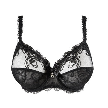 The half cup provides a natural uplift to the woman's breast by enhancing her décolletage. In a gorgeous Leavers lace this style has been enriched with soft draped tulle to create a magical effect against the body, whilst providing the additional support required. This collection enhances a woman's sensuality without...