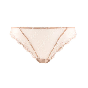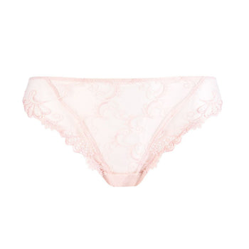 The timeless bikini combines a soft mesh knit fabric with a slight surface sheen & a lustrous plain jersey for the back, which makes it ideal for underneath any fitted garment. It has been detailed with an exquisite scalloped embroidery & a decorative motif with a delicate ribbon detailing on the back...