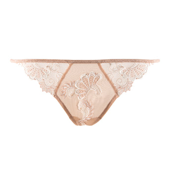 The sexy hip g-string has delicate thin lace sides & is in a lustrous silk satin with a beautiful embroidered tulle. This timeless collection has been designed to show a symbol of femininity & eternal love.